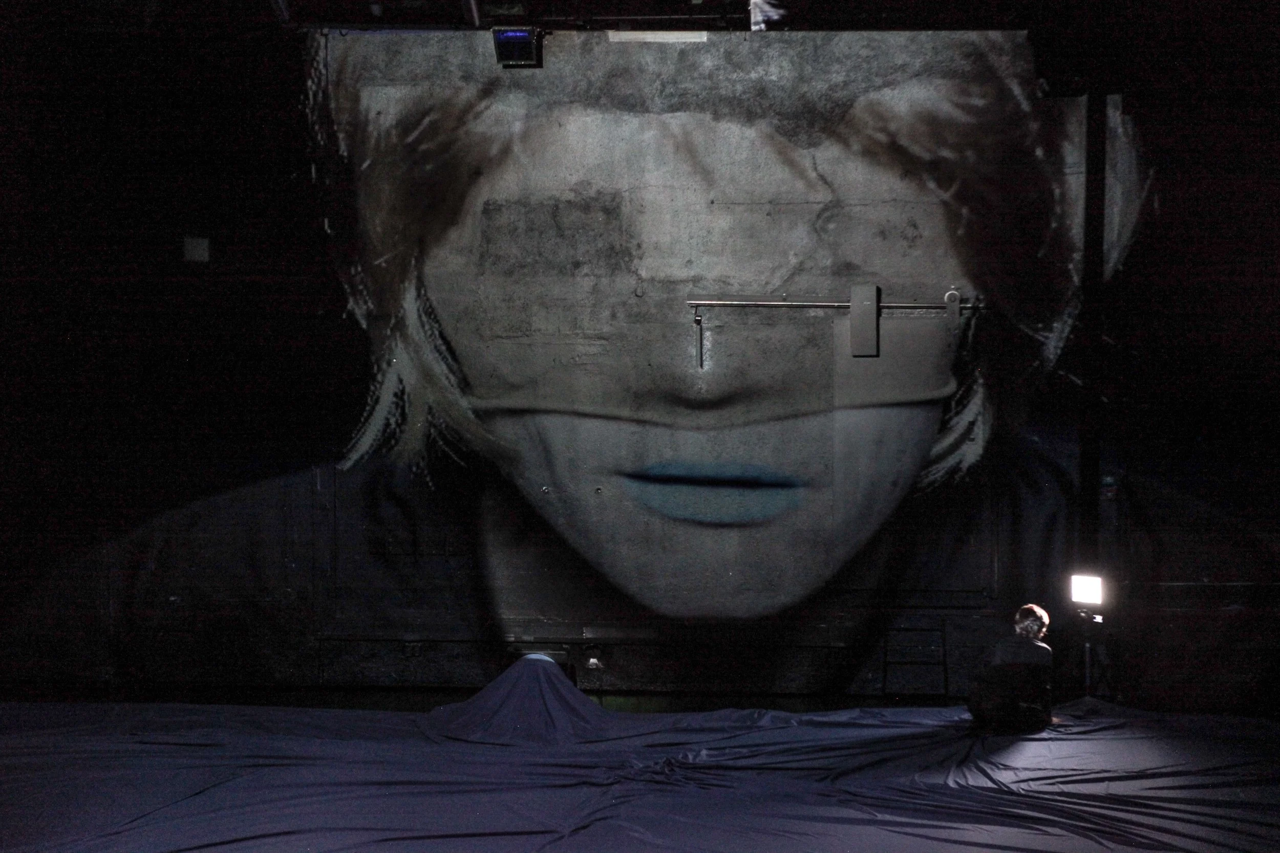 This is fiction//you are fiction too is work where movement, sound, a blowing floor and live video projection come together to create an unintelligible world. The work is suspended between and beyond genres to create a landscape that tests the sense of reality, to enter the sphere of unbelief, where fictions make themselves real.